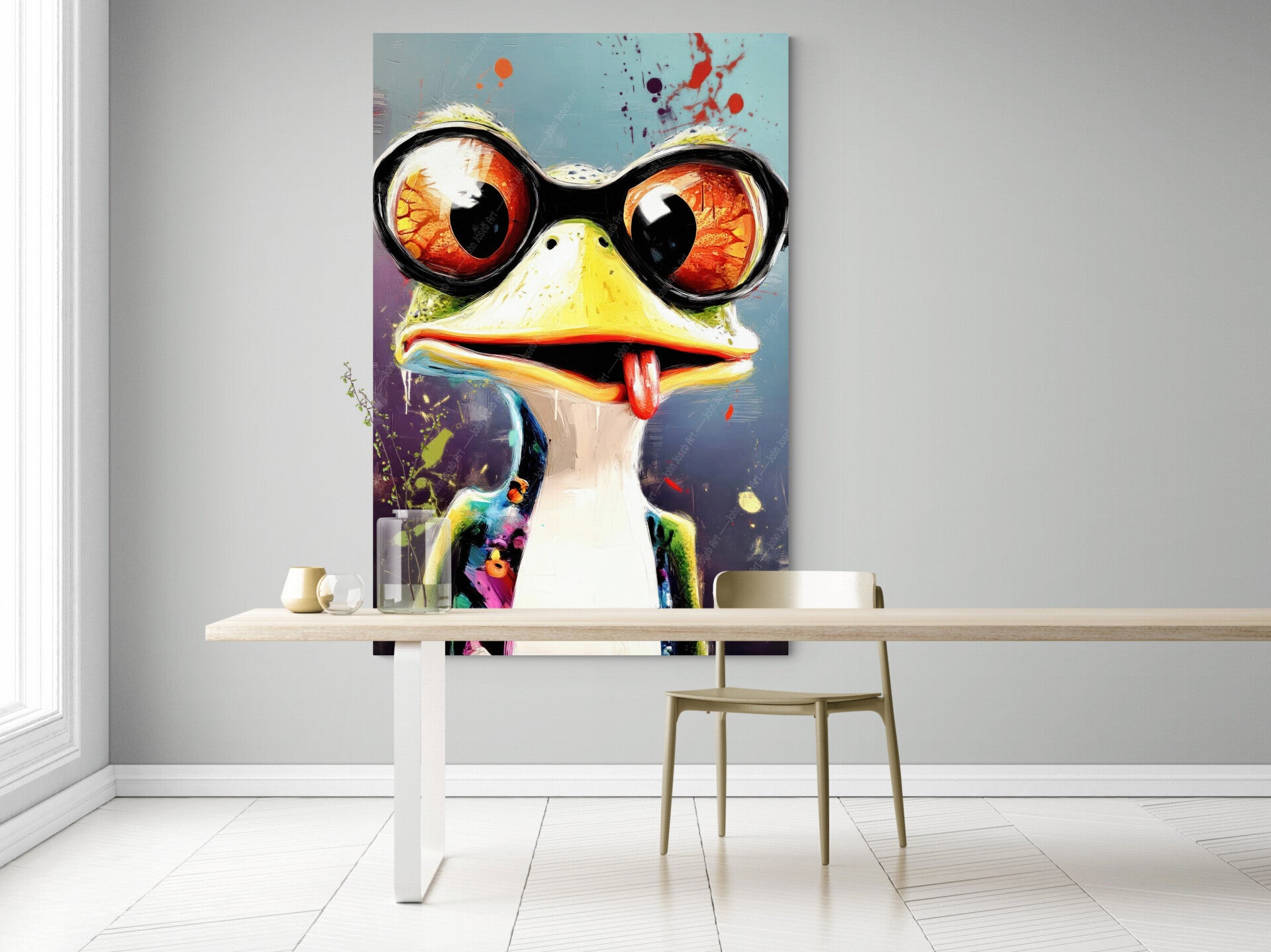 Grappige kikker met bril, humor, bolle ogen, kleurrijk, portret, kunst | dier, bruin, geel, groen, blauw, modern