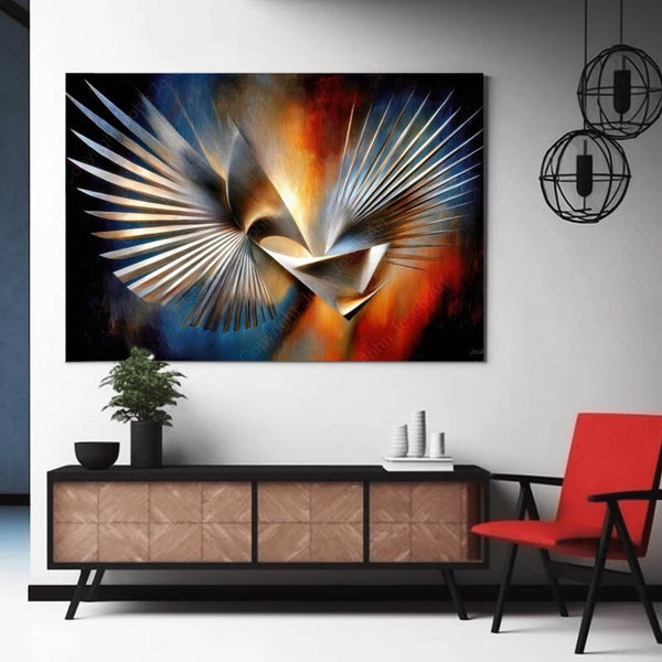 Geometrisch industrieel, metaal, aluminium, staal, abstract, kunst | zwart, bruin, geel, oranje, rood, grijs, zilver, modern