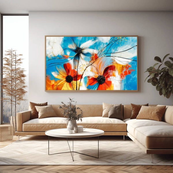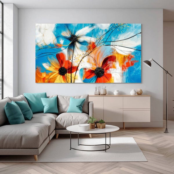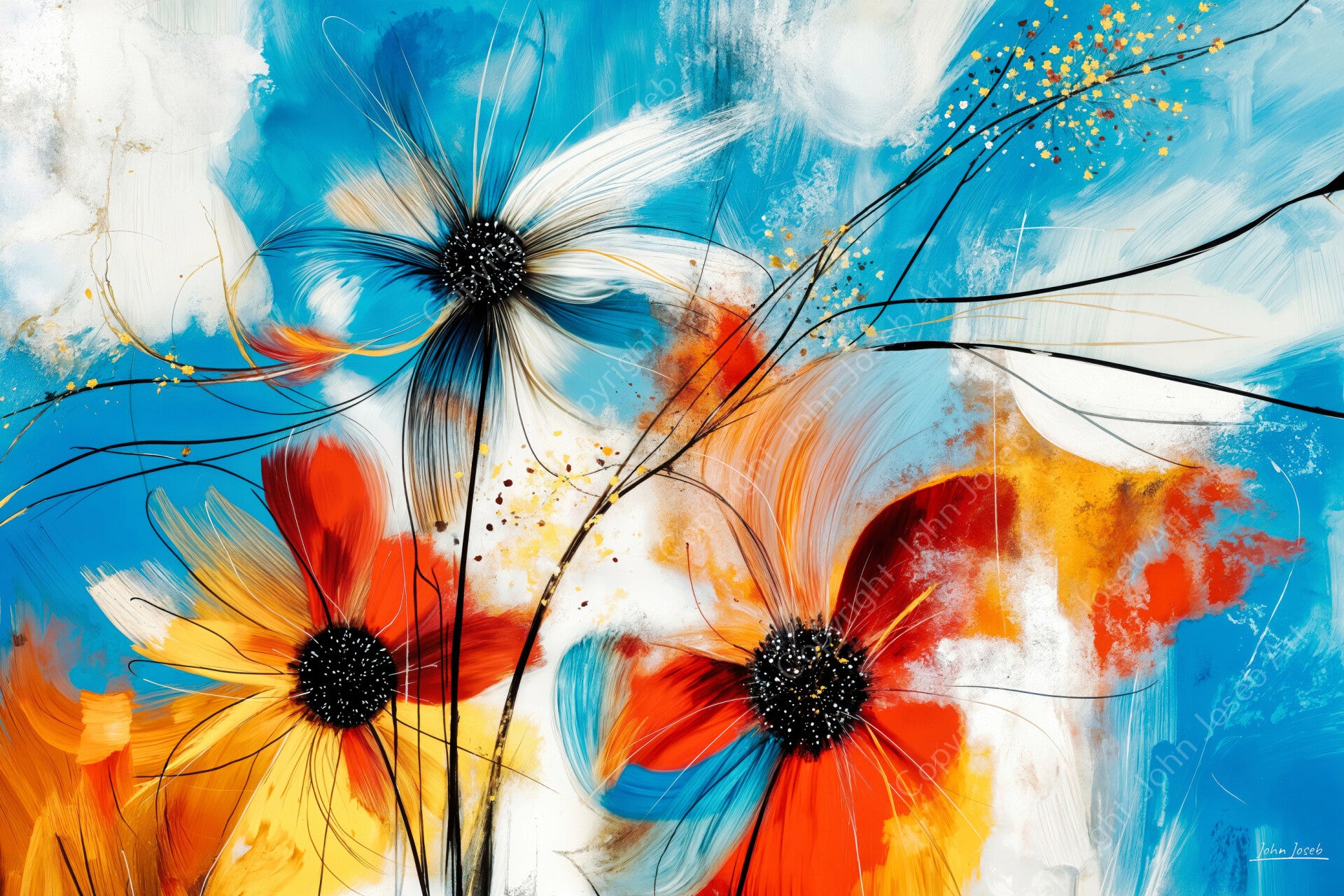 Wilde bloemen en takken, abstract, kleurrijk, felle kleuren, kunst, bloem, rood, blauw, wit, geel, oranje, modern